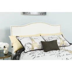 Flash Furniture Lexington Upholstered Twin Size Headboard With Accent Nail Trim In White Fabric