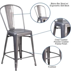 Flash Furniture 24” High Clear Coated Indoor Counter Height Stool With Back