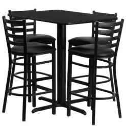 Flash Furniture 30” Round Laminate Table Set With X-Base And 4 Ladder Back Metal Barstools
