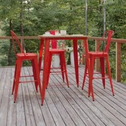 Flash Furniture Lars 30” Round Wood Cocktail Table With 30” And 42” Columns – Set Of 5