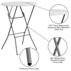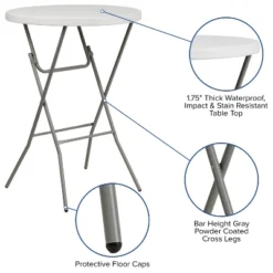 Flash Furniture 2.6-Foot Round Granite White Plastic Bar Height Folding Table